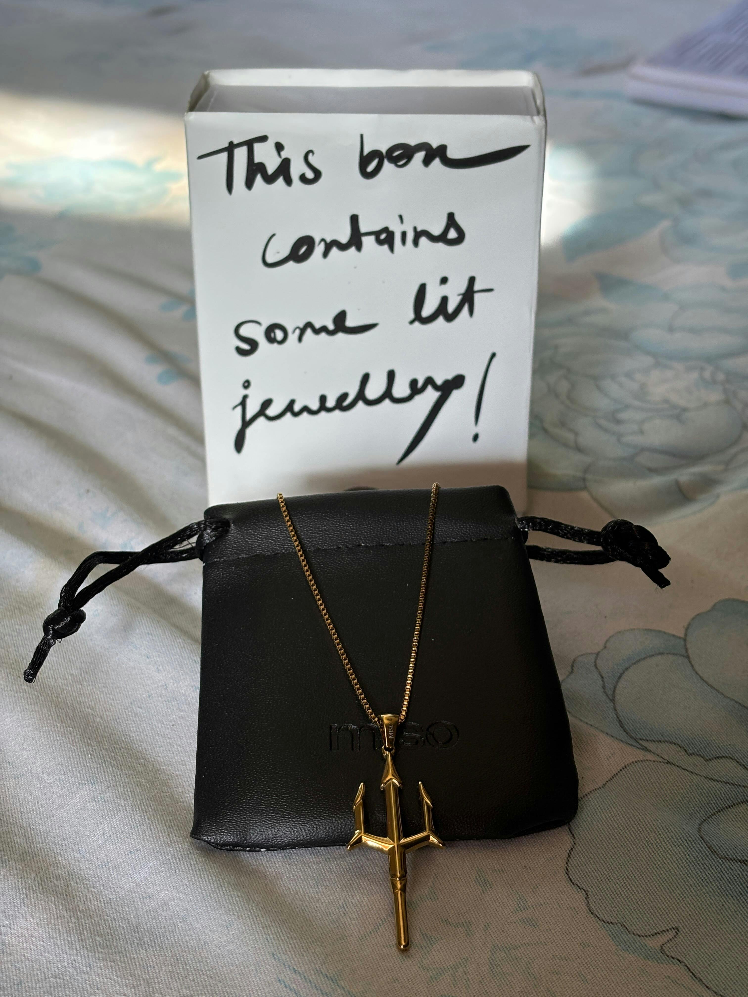 Golden Trident Pendant with Chain