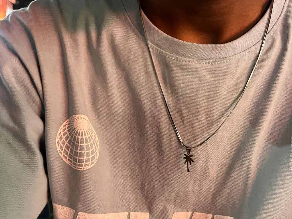 Tropical charm featuring an intricately designed palm tree pendant, evoking the warmth of a sunny getaway. Paired with a delicate chain, perfect for adding a touch of effortless elegance.