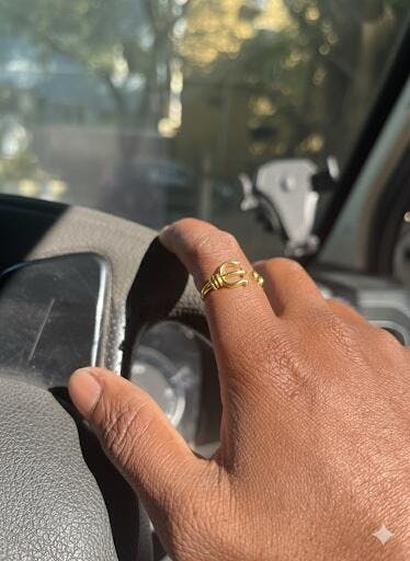 The "Trishula Adjustable Ring" features a trident design, symbolizing strength and power. Its adjustable open-ended design ensures a comfortable fit for sizes M to L finger sizes.